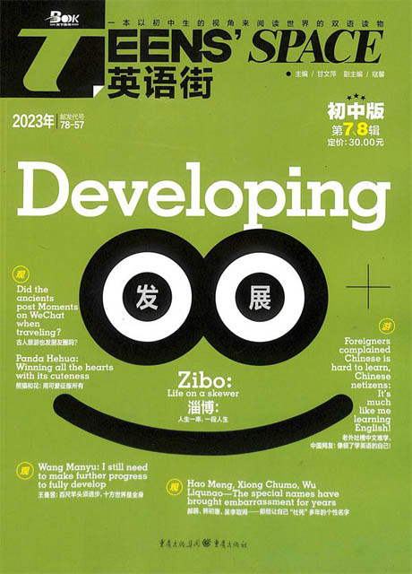 《英語(yǔ)街初中版》是一本以初中生的視角來(lái)閱讀世界的雙語(yǔ)雜志,專(zhuān)門(mén)為中國(guó)7~9年級(jí)學(xué)生量身打造。